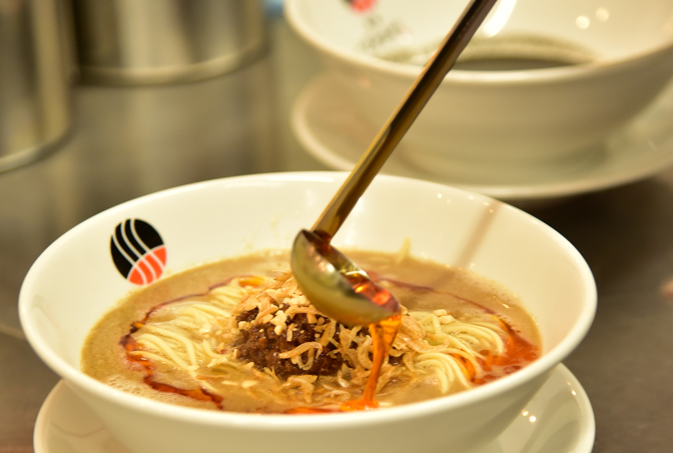 自家製ラー油、自家製ごまペースト、名古屋コーチンを使った黄金スープ。素材から徹底的にこだわりました。 クリーミーで濃厚な味わい、甘さと辛さの絶妙なバランスで一度食べたらやみつきに。